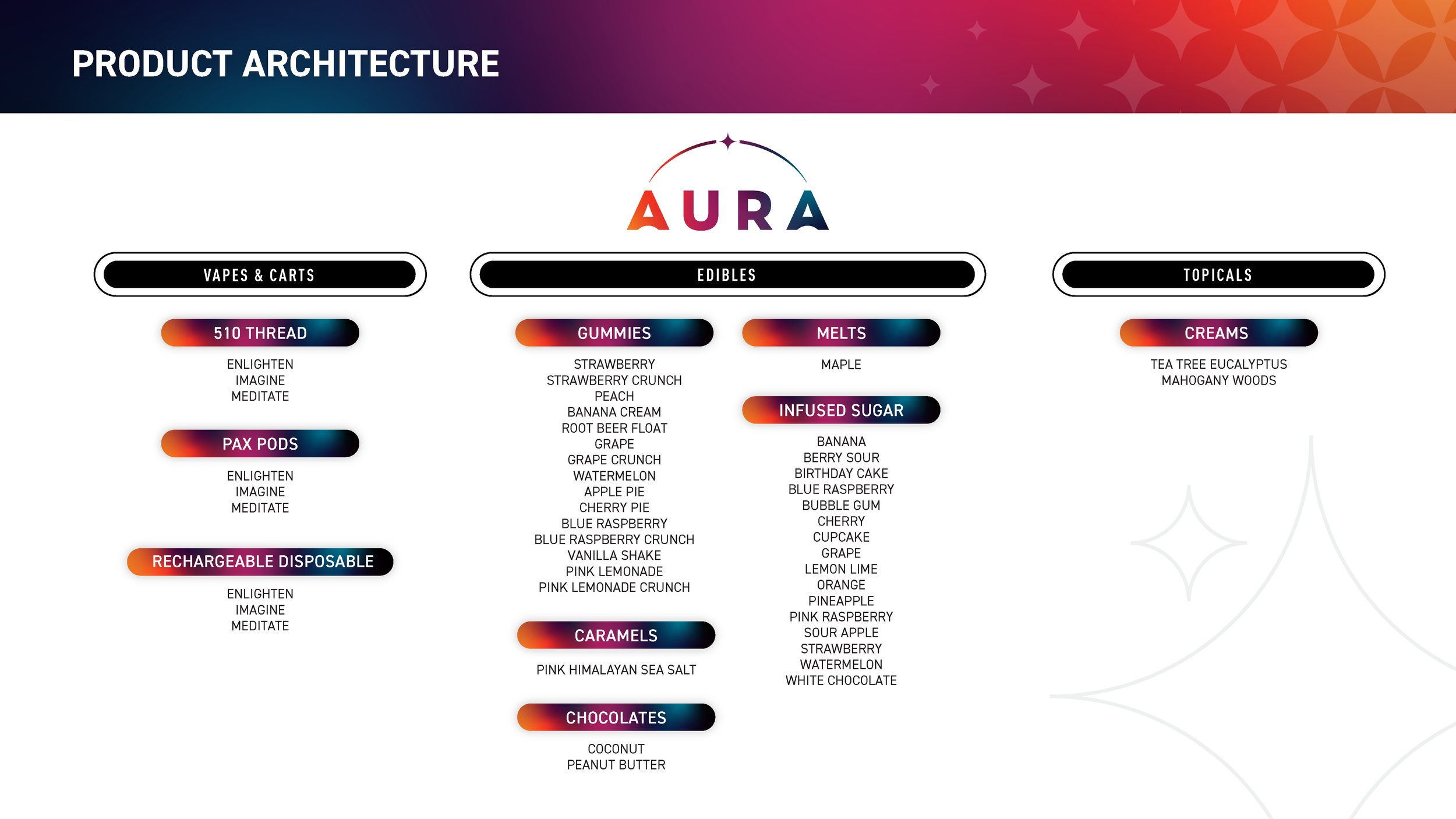 This brand architecture system would inform product positioning and overall go-to-market strategy for future new brands and products moving forward and create a sense of scale for their business. It also provides clarity on their offerings, and ensures all of their brands can stand alone, but also coexist as more are added to the family.
