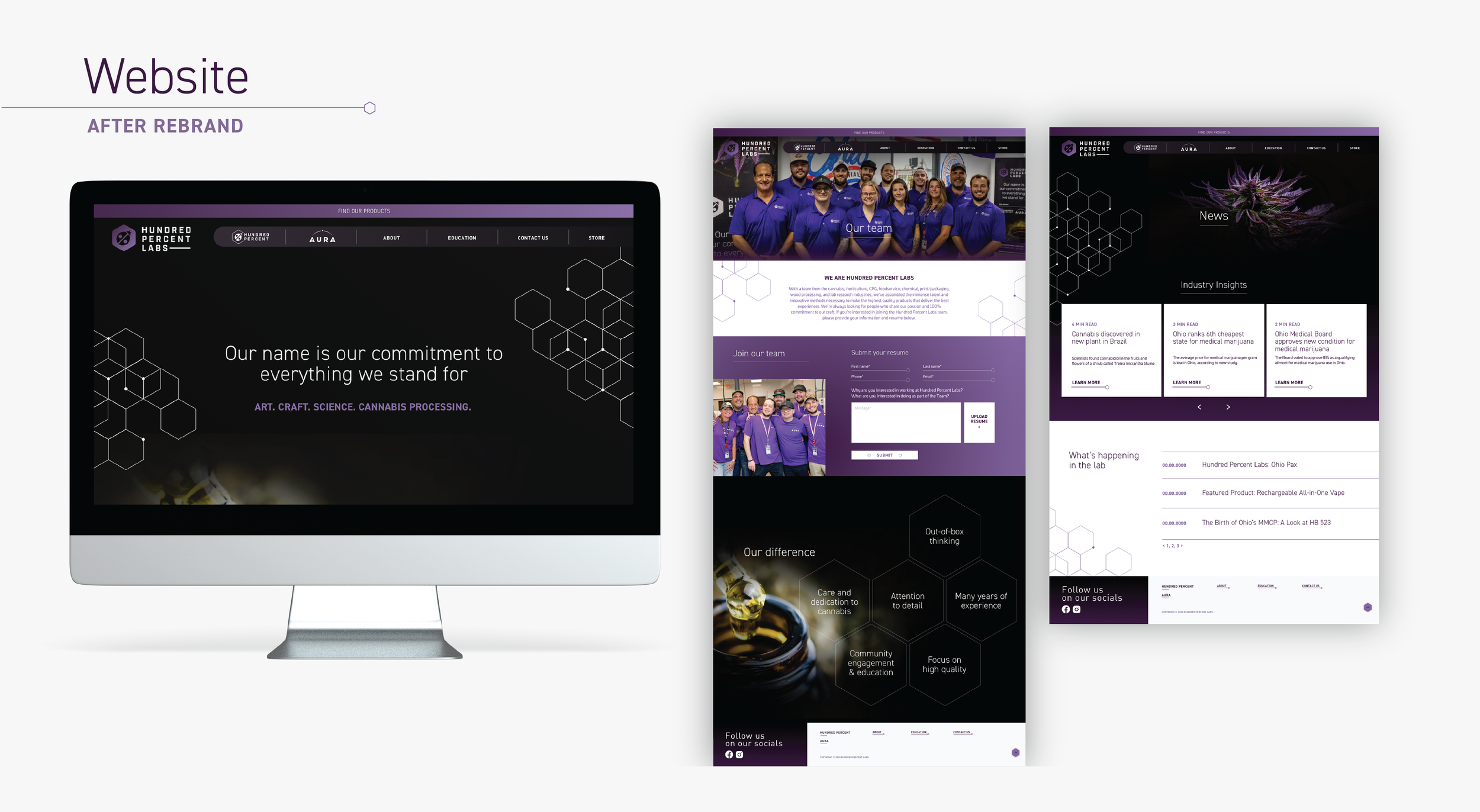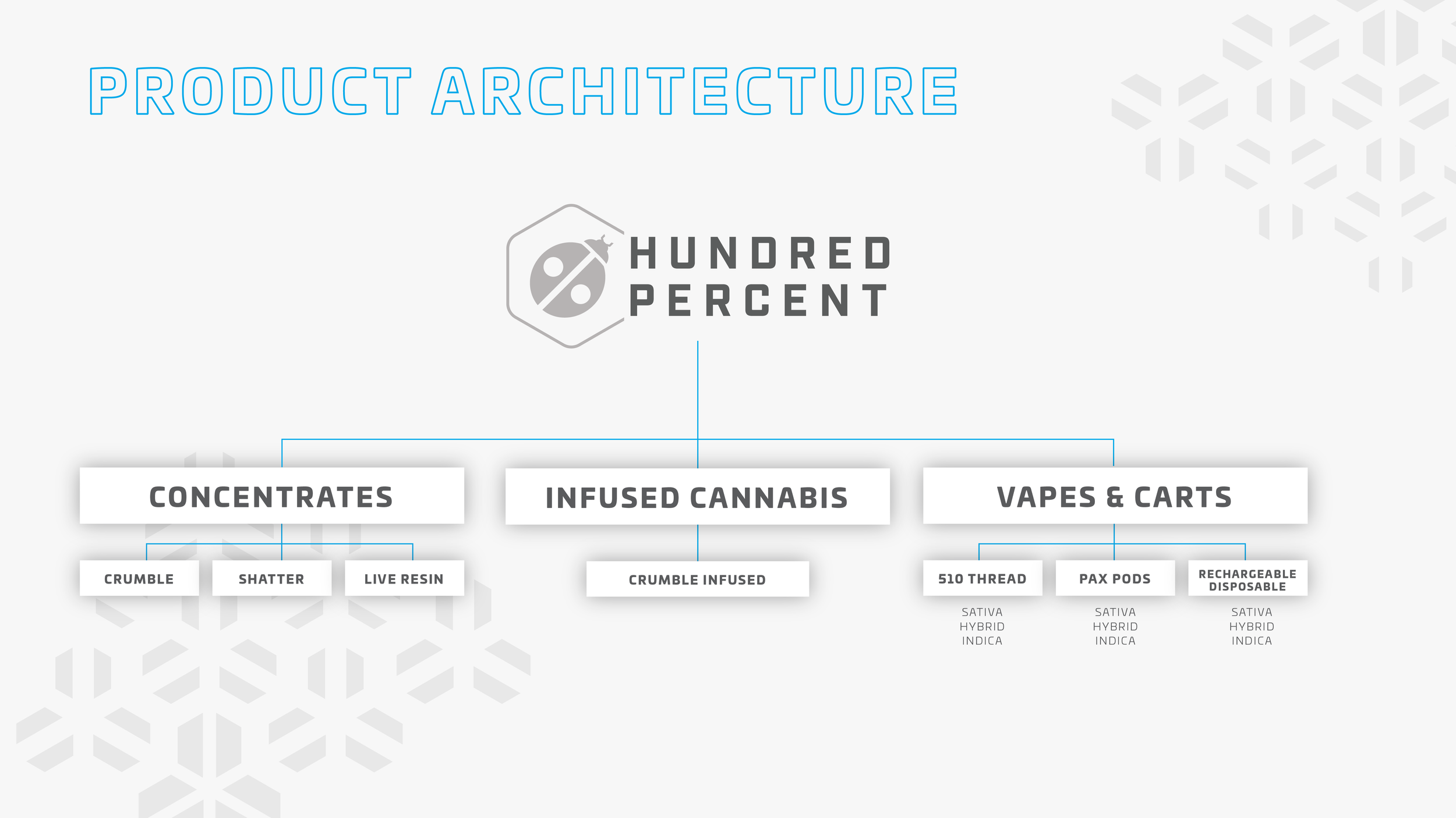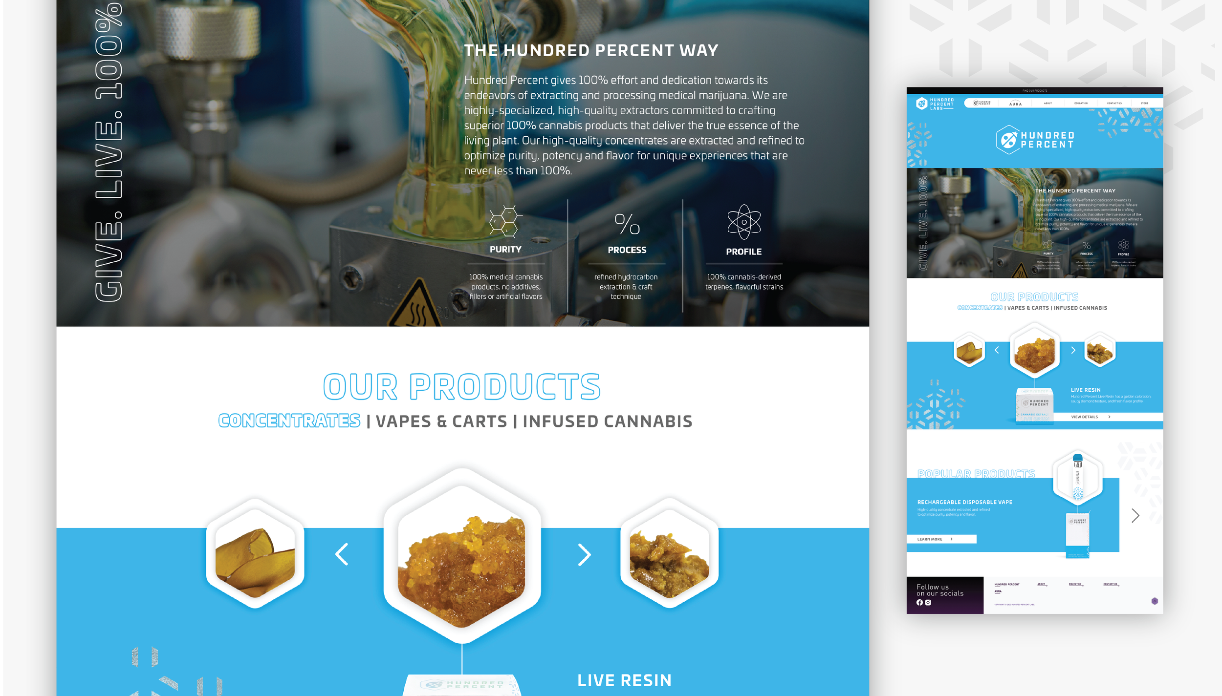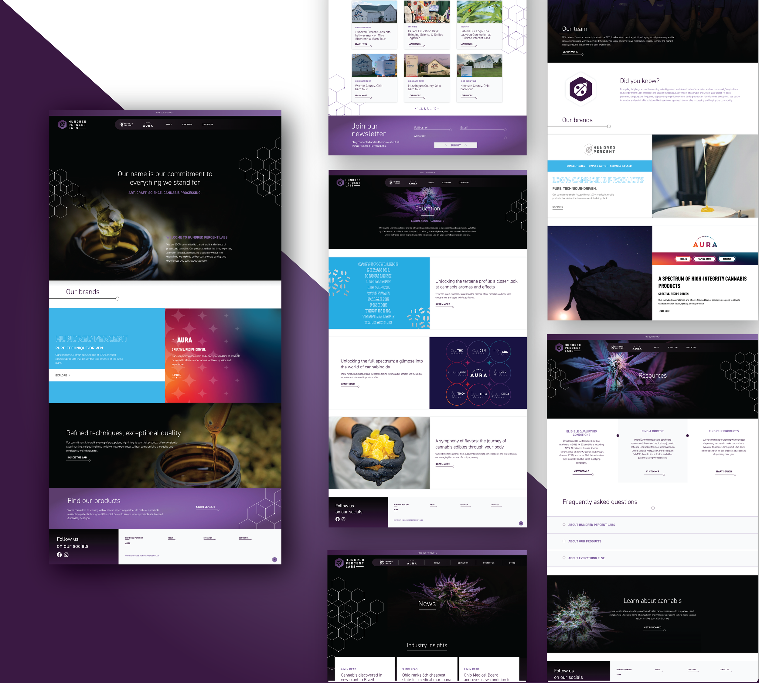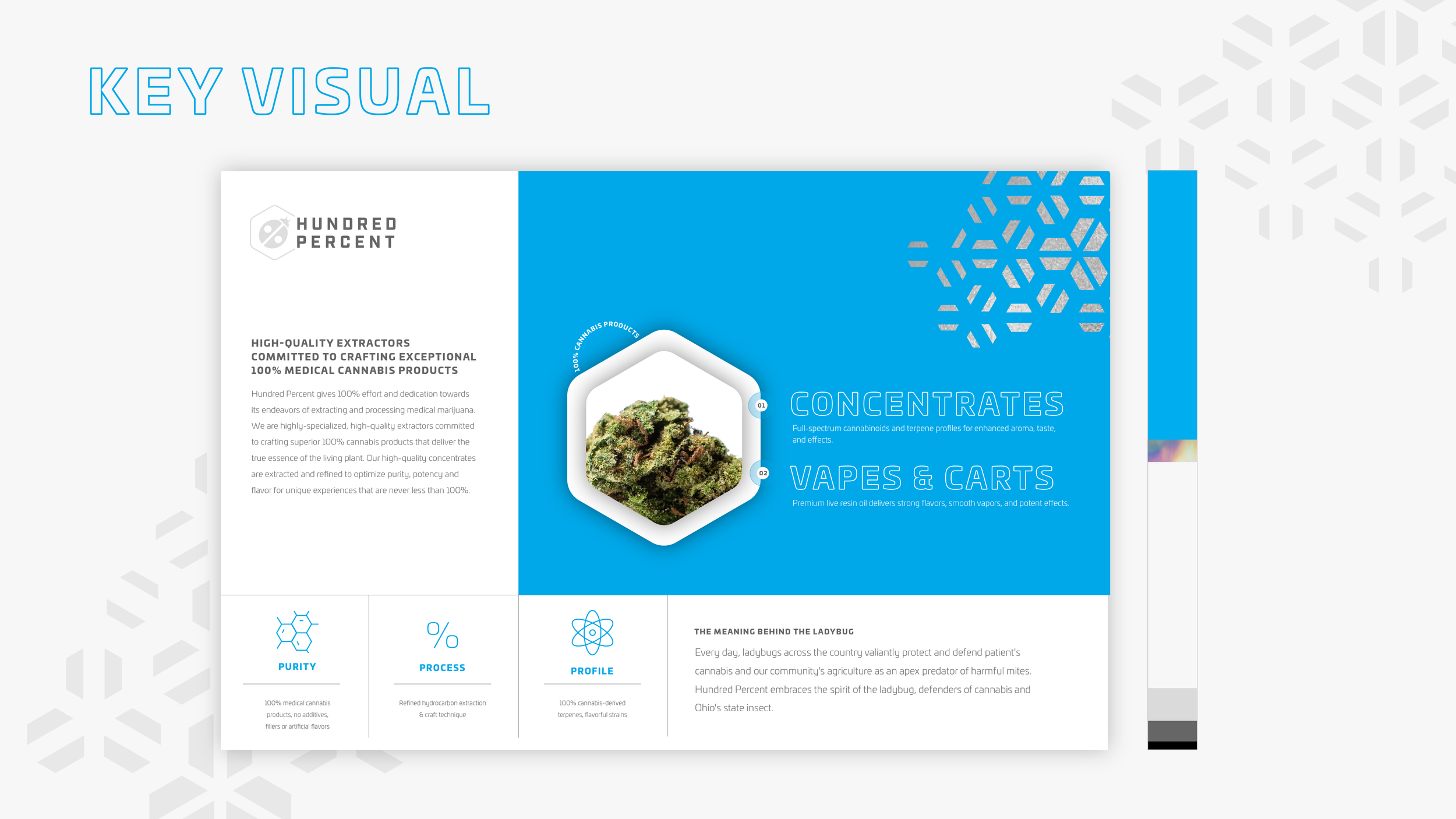 Hundred Percent Labs formed in 2019, and quickly made a name for themselves in Ohio’s medical cannabis market as highly-specialized extractors and processors of pure, high-quality concentrates. Their reputation was built by delivering high-quality products to patients throughout Ohio that reflect the expertise, attention to detail, passion and discipline they bring to their craft every day. As they continued to innovate their processes and extend into new product categories, they needed to create a business and brand strategy that allowed for future expansion, but that also would resonate with a range of consumer segments and consumption patterns.
